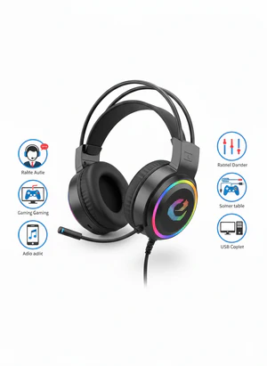 RGB Gaming Headphone offers immersive gaming audio with eye-catching multicolor RGB lighting and a built-in microphone, designed for wired gaming setups 🎮🌈.